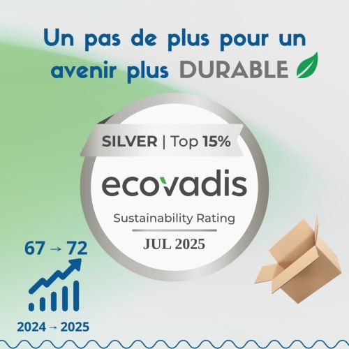 Nous avons obtenu la médaille d’argent EcoVadis 2025, avec un score en progression de 67 à 72/100.